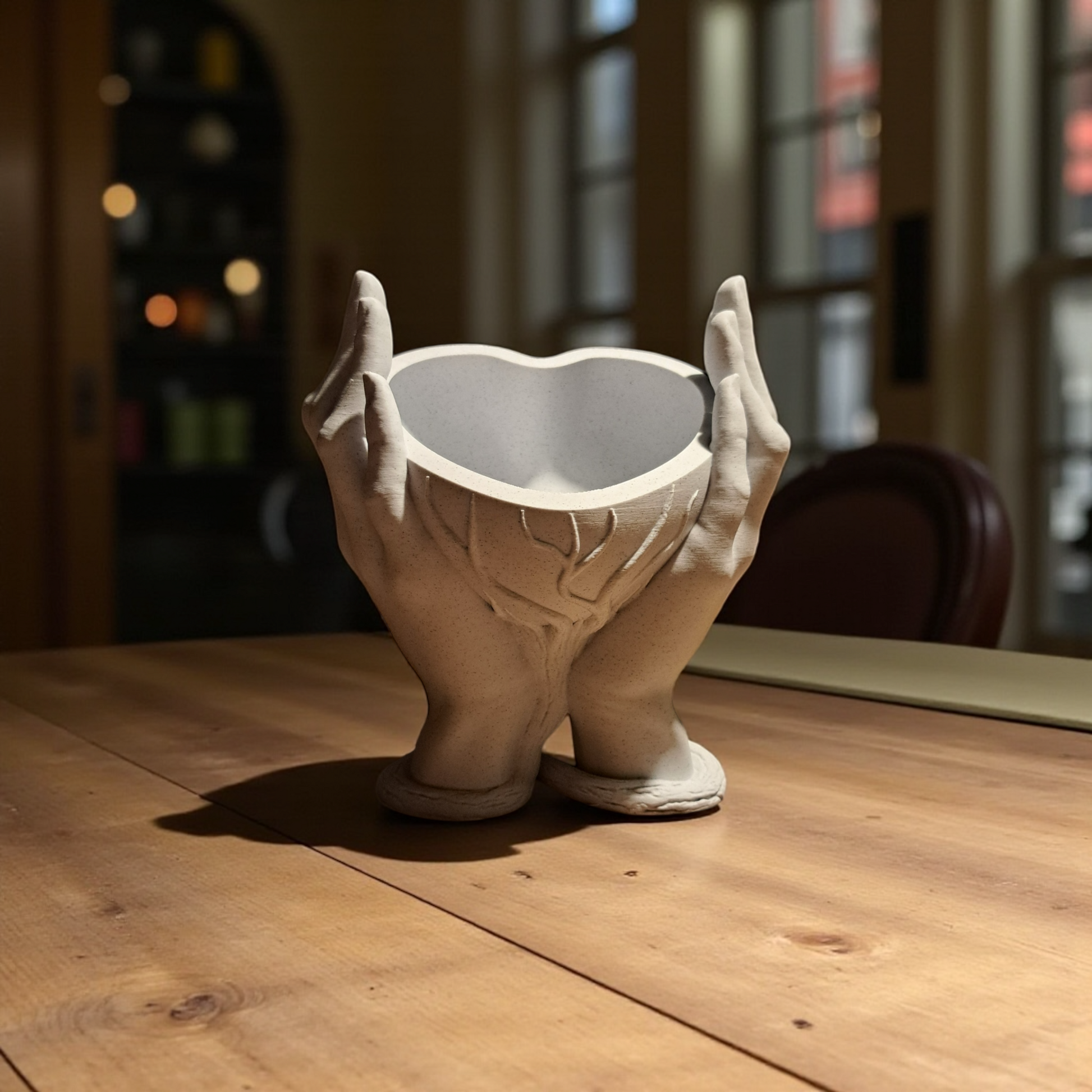 Symbolic Design: The interlocking hands forming a heart-shaped bowl evoke profound feelings of love, compassion, and protection, making it a truly meaningful addition to any space.
