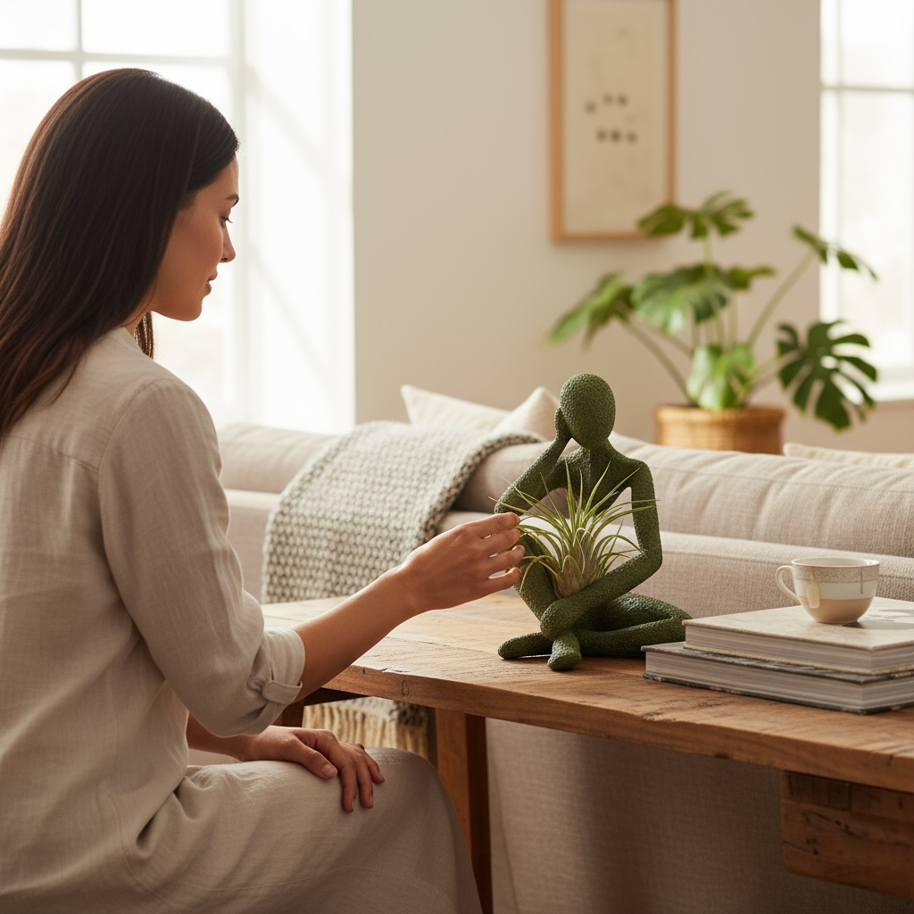 Vessel for Ideas (and Air Plants): The lap of the sculpture is perfectly shaped to hold a small air plant, creating a beautiful metaphor for a budding idea or the nurturing of one's thoughts.
